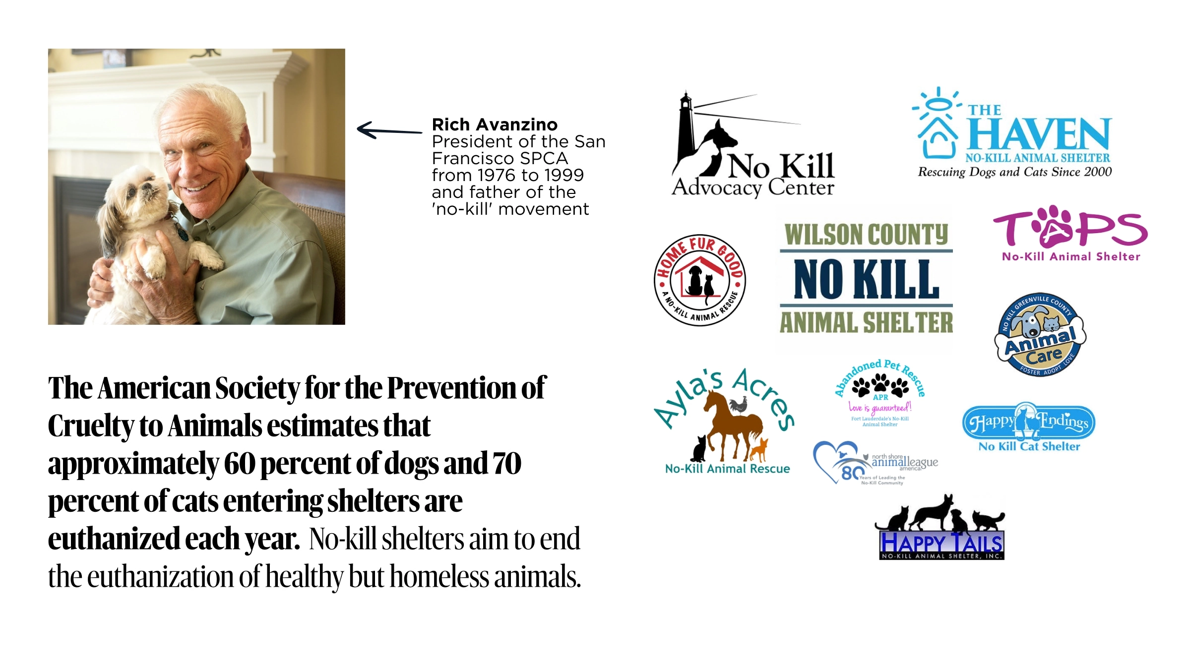 Today, Avanzino's "no-kill" model has become the standard for animal shelters in the United States, having saved countless animals from unnecessary death. But it's not perfect. While it is effective in cutting down the number of animals that are euthanized, it's created a problem of overcrowding in densely populated areas, leading to a wide range of problems.