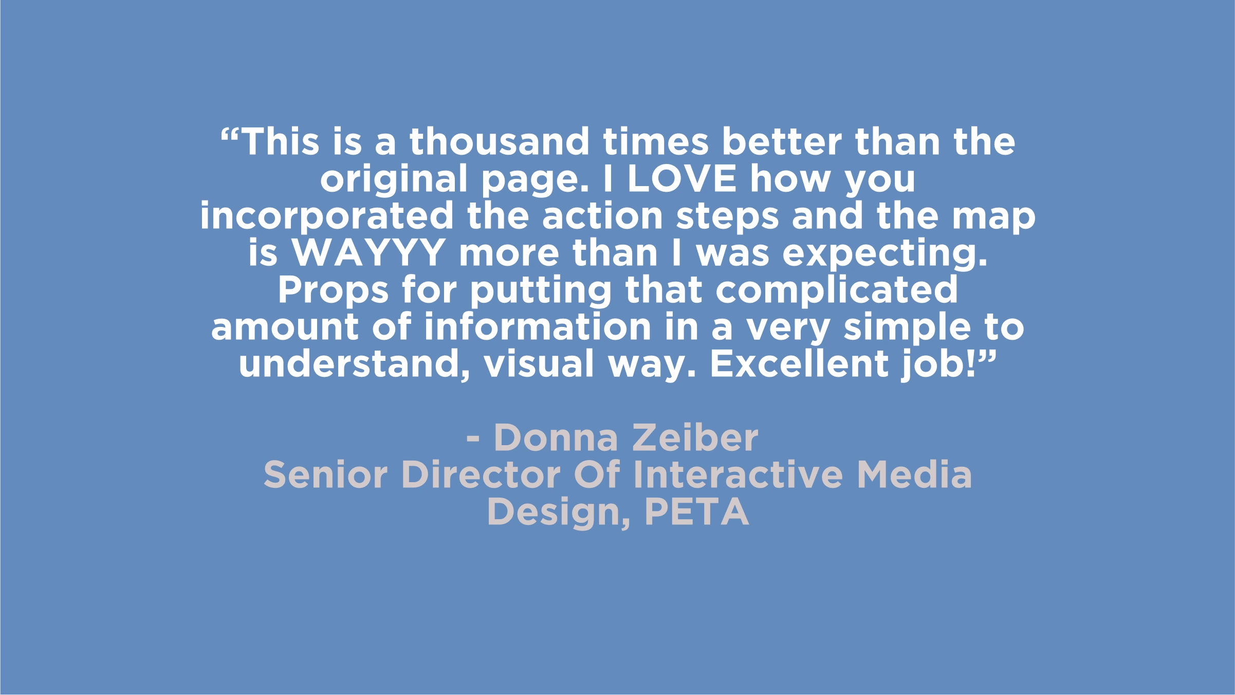 PETA was very receptive to our final design and said that they planned to update the database with our recommendations soon. They appreciated how the new design made the content more accessible, and easier for users to find content that was relevant to them.